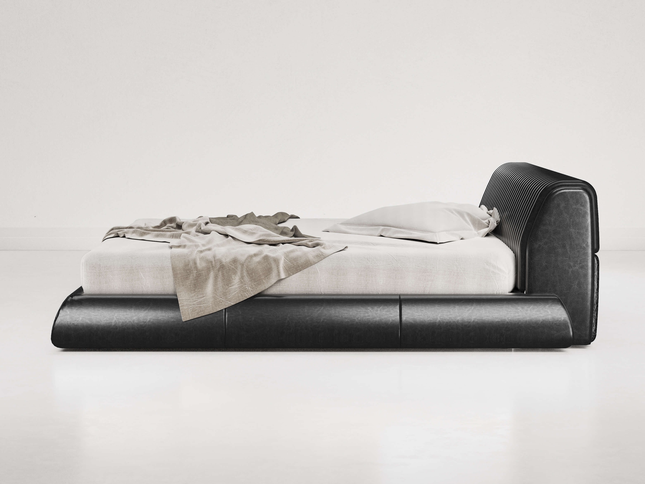 The “Voyage d’Une Nuit” bed is a true statement piece that will add glamour and luxury to any bedroom. Its unique upholstered headboard, inspired by traditional handmade upholstery techniques, recalls the timeless beauty of classic design. The result is a cozy and inviting atmosphere that is perfect for any night plans.
