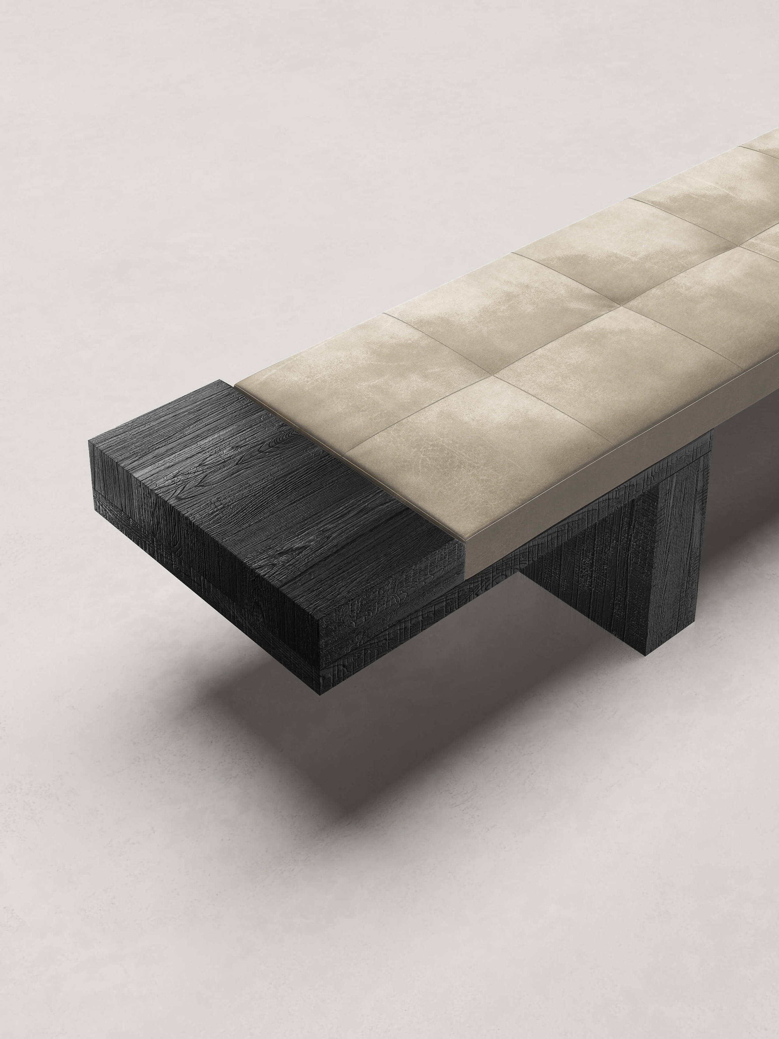The clean and essential shape of the bench is once again enhanced by the materials.